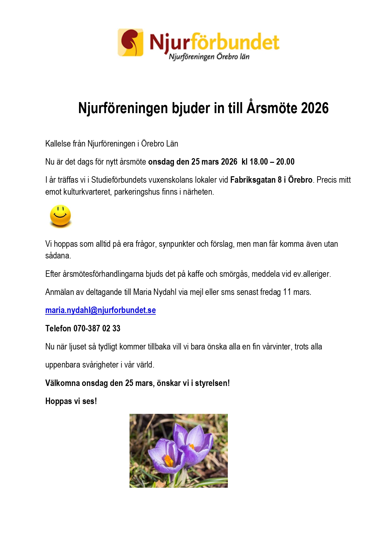 Anmälan till årsmötet i Njurföreningen i Örebro:
